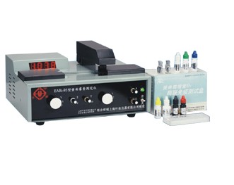产品简介:EAB1-95黄曲霉素测定仪采用固相酶联免疫吸附ELISA的原理,由试剂盒和光度计二大件组成,通过抗黄曲霉毒素B1抗体与酶标抗原:待测抗原的竞争免疫反应以及酶的催化显色反应相结合,在特定波长滤光片的作用下,产生对光的吸收反应,达到灵敏、正确、快速、安全地检测AFB1黄曲霉毒素B1的效果。