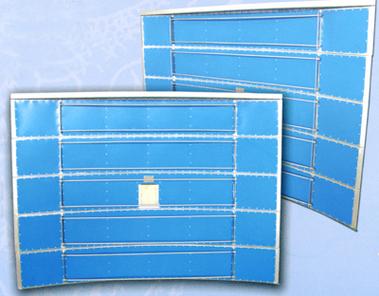 我公司生产的挡粮板形式为组合式挡粮板。分为平面挡粮板、三角挡粮板和弧型挡粮板三种。骨架采用异型空民型钢,材质符合GB6728-86标准。框内填充聚苯乙烯自熄泡沫板,双面面板采用0.5mm镀锌板或彩板,压痕成型。框架、填充材料、面板经复合、加压、拉铆成型